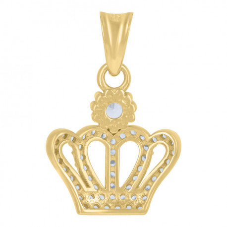 - 10KT Yellow gold mens cubic-zirconia crown fashion charm pendant