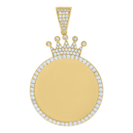 - 10KT Yellow gold mens cubic-zirconia crown photo frame charm pendant