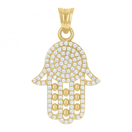 10kt Yellow Gold Unisex Cubic-Zirconia Hamsa Symbol Religious Charm Pendant