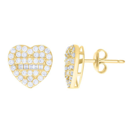 10kt Yellow Gold Womens Baguette Round Cubic-Zirconia Heart Stud Earrings