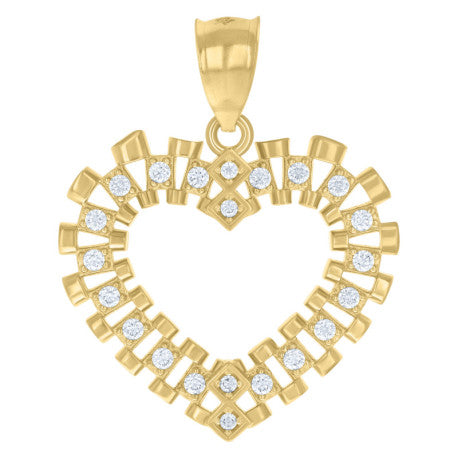 - 10KT Yellow gold womens cubic-zirconia heart charm pendant