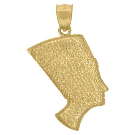- 10KT Yellow gold textured unisex nefertiti egyptian charm pendant