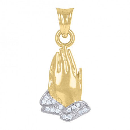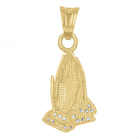 - 10KT Yellow gold womens cubic-zirconia praying hands religious symbol charm pendant