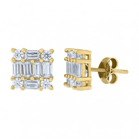 10kt Yellow Gold Mens Round & Baguette Cubic Zirconia Square Head Stud Earrings