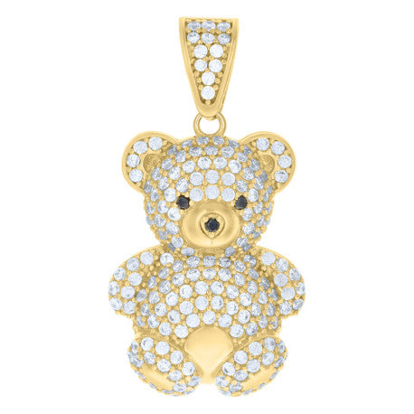 - 10KT Yellow gold mens black white cubic-zirconia teddy bear charm pendant