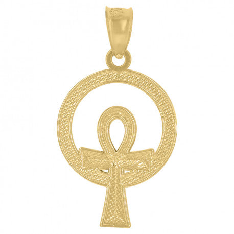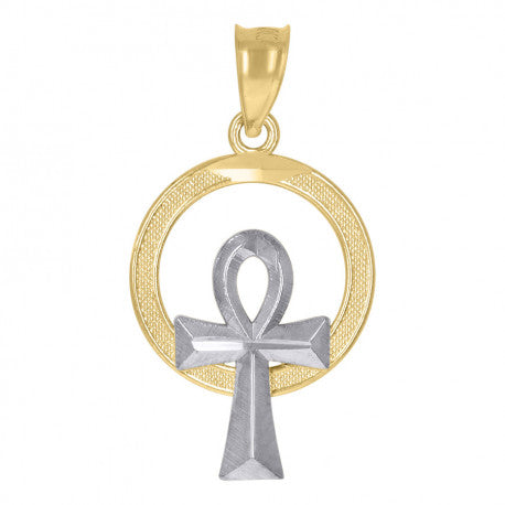 - 10KT Gold two-tone textured ankh cross religious charm pendant