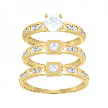 10kt Two-Tone Gold Womens Cubic-Zirconia Trio Ring Set