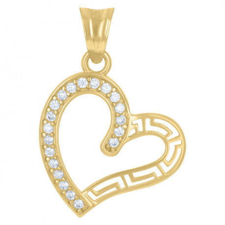 - 10KT Yellow gold womens cubic-zirconia heart charm pendant