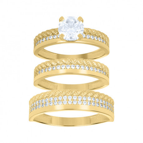 10kt Yellow Gold Womens Cubic-Zirconia Trio Ring Set