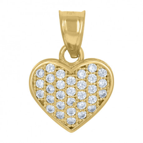 - 10KT Two-tone gold womens cubic-zirconia cluster heart charm pendant