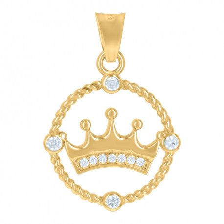 14Kt Yellow Gold Unisex Cubic-Zirconia Crown Fashion Charm Pendant