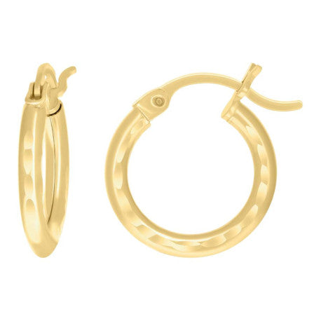 14K GOLD DIAMOND CUT ROUND TUBE HOOP 2MM EARRINGS