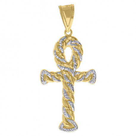 - 14KT TWO-TONE GOLD EGYPTIAN ANKH CROSS RELIGIOUS CHARM PENDANT