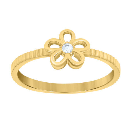 - 14KT YELLOW GOLD WOMENS CUBIC-ZIRCONIA FLOWER FASHION RING
