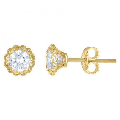 14Kt Yellow Gold Womens Cubic-Zirconia 7mm Flower Stud Earrings