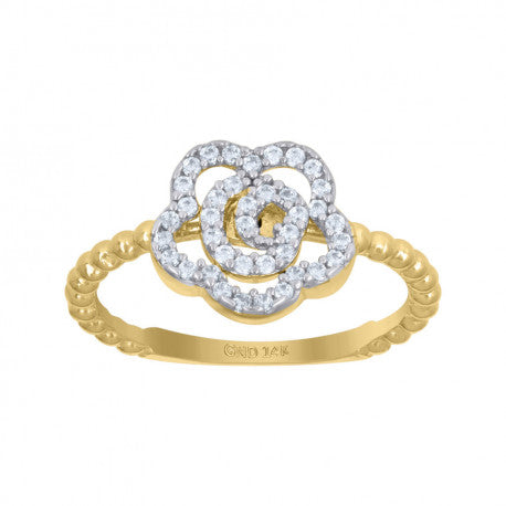14K GOLD FLOWER W. STONES RING