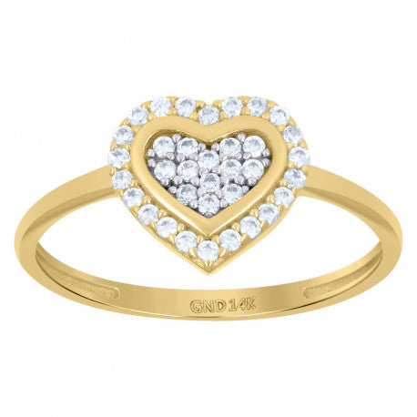 - 14KT TWO-TONE GOLD WOMENS CUBIC-ZIRCONIA HEART RING