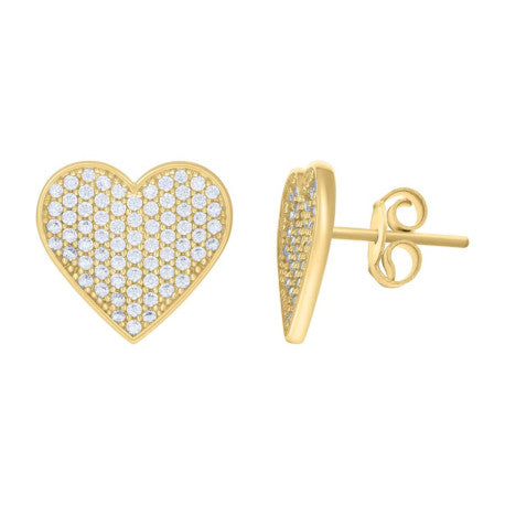 14kt Yellow Gold Women Cubic-Zirconia Heart Stud Earrings