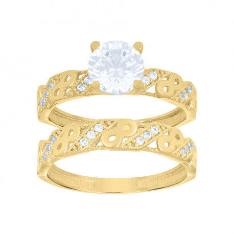 14kt Yellow Gold Womens Cubic-Zirconia Infinity Duo Bridal Ring Set