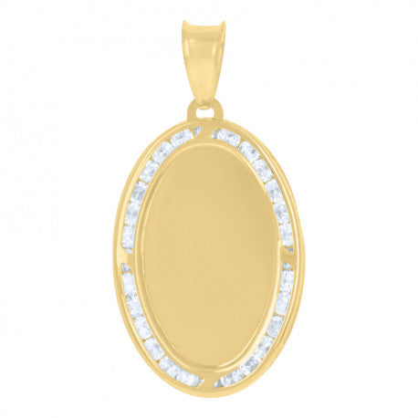 - 14KT YELLOW GOLD CUBIC-ZIRCONIA MEDALLION OVAL FASHION CHARM PENDANT