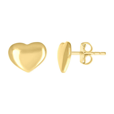 14kt Yellow Gold Womens Puff Heart Stud Earrings