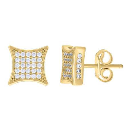 14kt Yellow Gold Cubic-Zirconia Square Stud Earrings