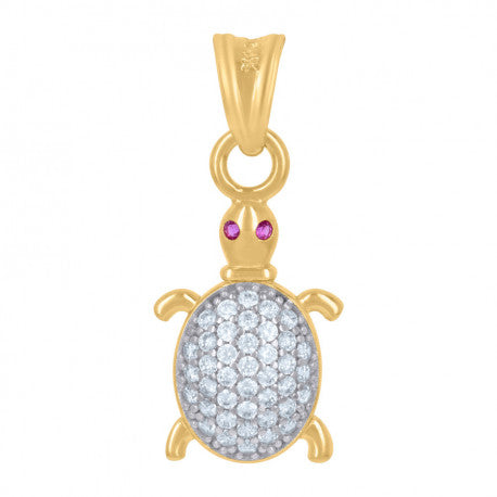 - 14KT TWO-TONE GOLD UNISEX PINK WHITE CUBIC-ZIRCONIA ANIMAL TURTLE OCEAN CHARM PENDANT