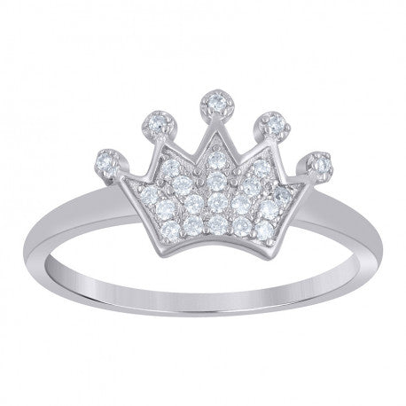 925 Sterling Silver Womens Cubic-Zirconia Crown Fashion Ring