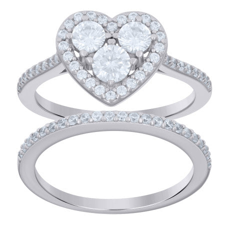 925 Sterling Silver Womens Cubic-Zirconia Heart Duo Ring Set Ring