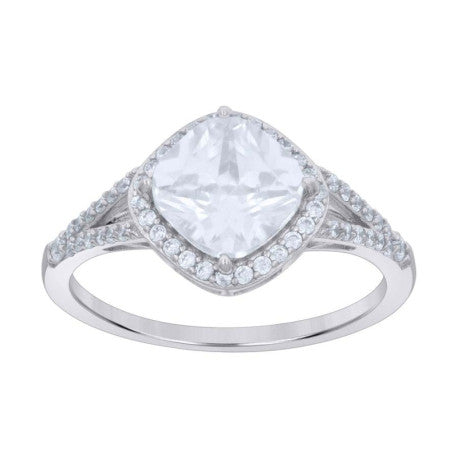 925 Sterling Silver Womens Cushion-cut Round Cubic-Zirconia Fashion Ring