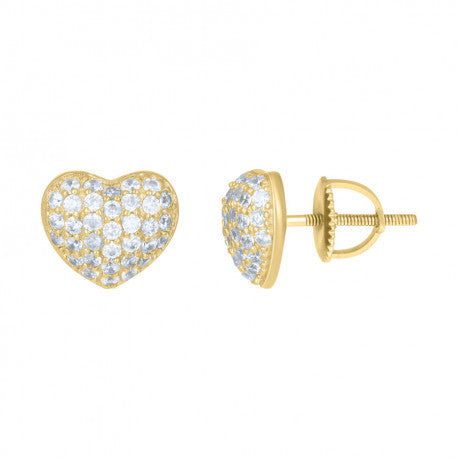 925 Sterling Silver Yellow-Tone Womens Cubic-Zirconia Heart Stud Earrings