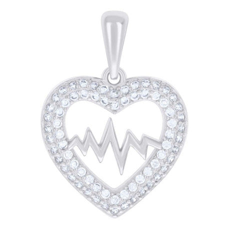 925 Sterling Silver Womens Cubic-Zirconia Heartbeat Heart Charm Pendant