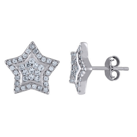 925 Sterling Silver Womens Cubic-Zirconia Star Fashion Stud Earrings